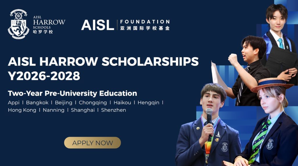The application deadline for the Y2026-2028 AISL Harrow Scholarships is Sunday 30th November 2025. For further details, please visit the webpage of AISL Harrow Scholarships Y2026-2028.